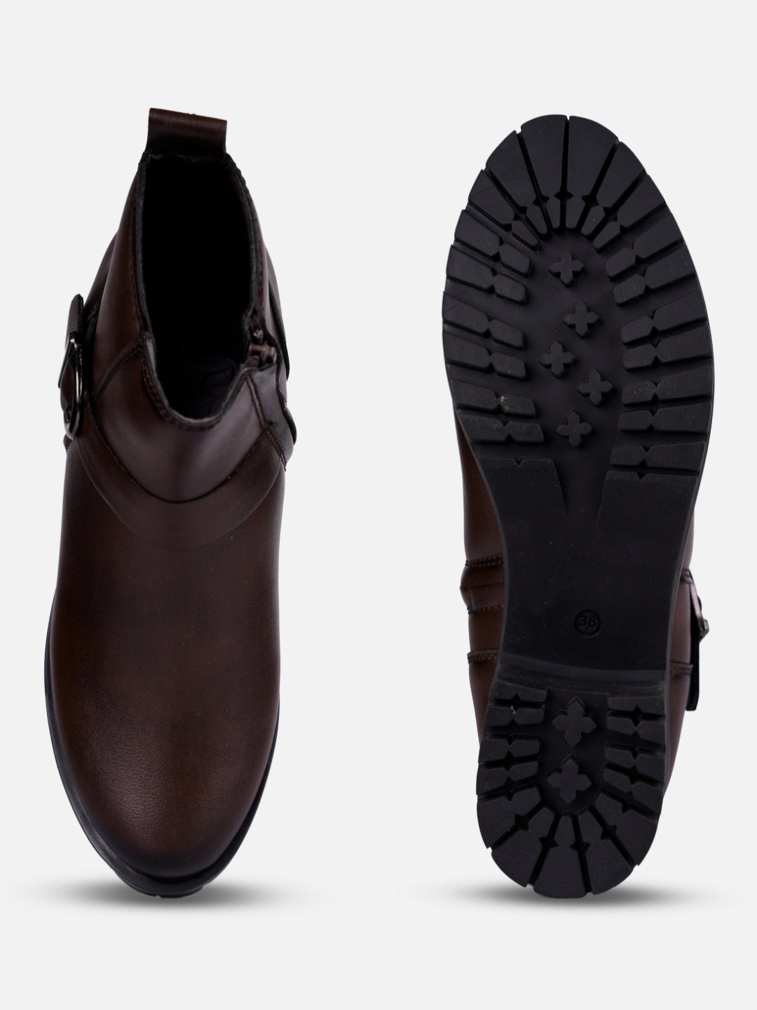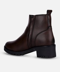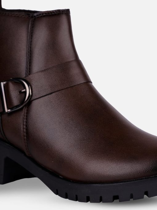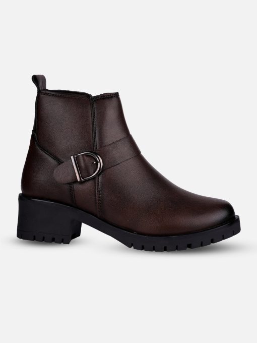 This elegant ladies’ ankle boot features a sleek brown upper exterior, designed for formal and casual occasions both. The stylish side buckle strap adds a touch of sophistication, making it a versatile choice for both casual and dressy outfits. With its comfortable fit and contemporary design, this boot is perfect for the modern woman seeking both fashion and functionality.